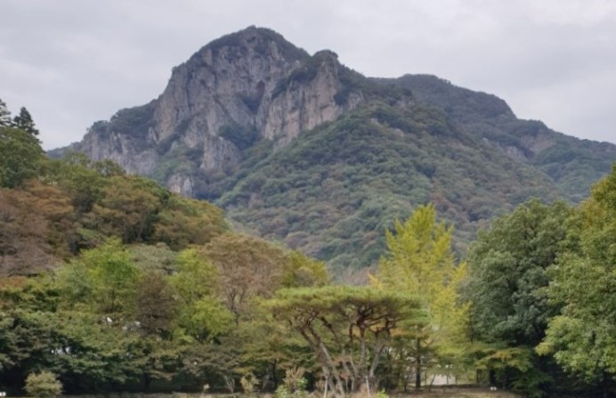 특히 가을이면 이 산세가 붉고 노란 단풍과 겹쳐져 환상적인 풍경을 선사합니다.